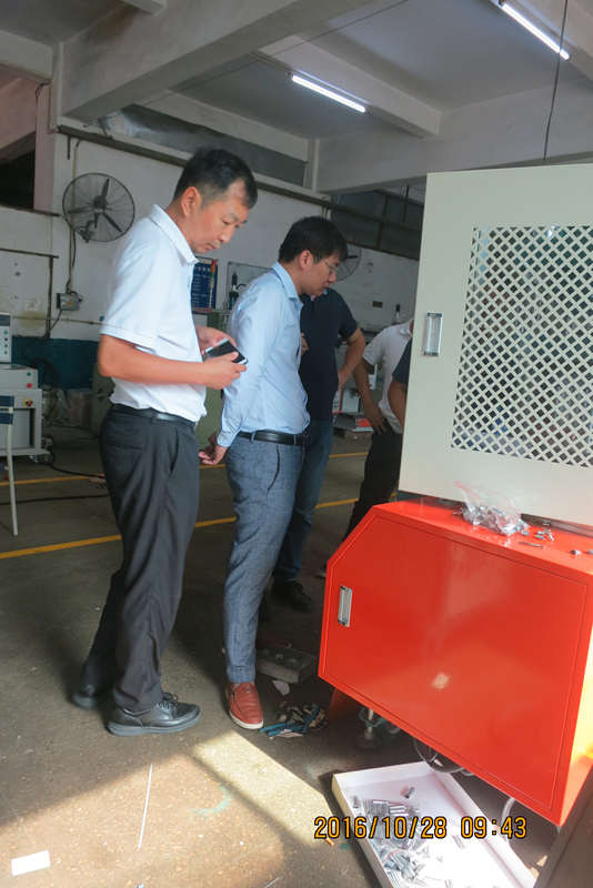 客戶考察圍觀員工測試機(jī)械設(shè)備